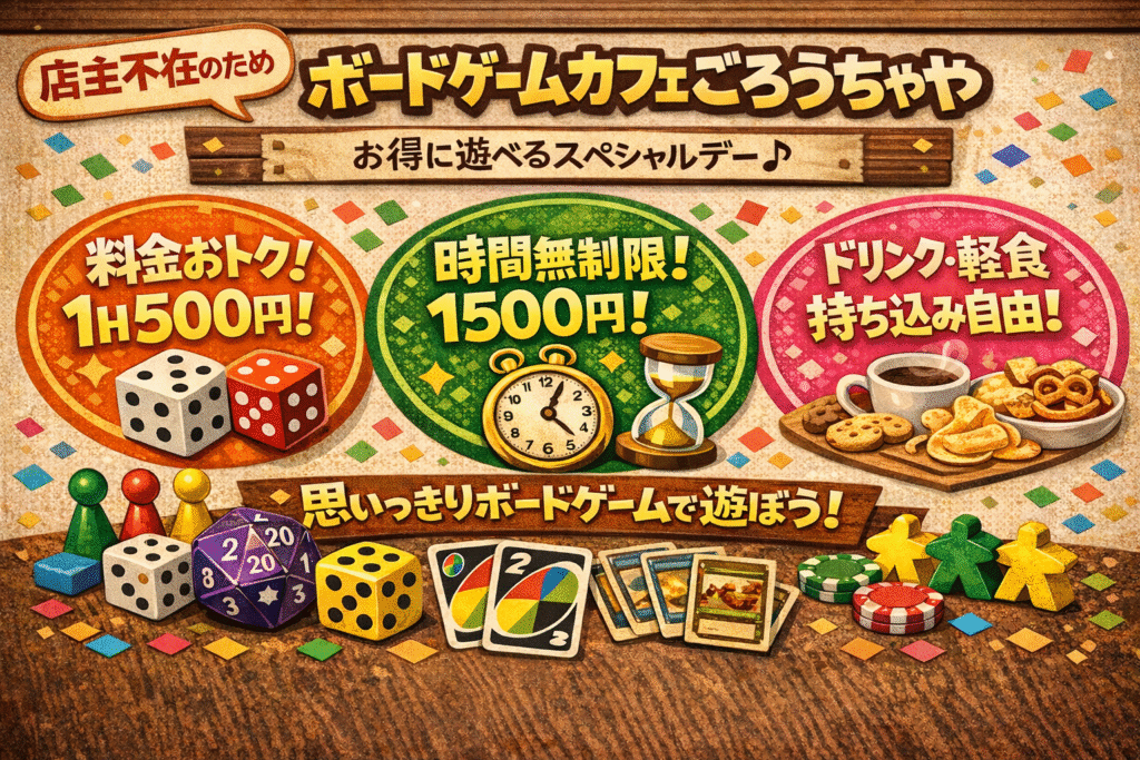 いつも「ボードゲームカフェ ごろうちゃや」をご利用頂きありがとうございます